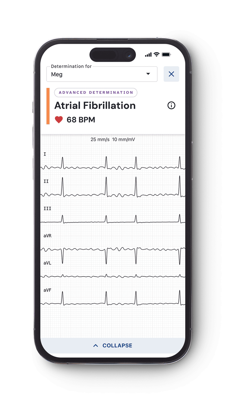 Your Veterans can record six leads of ECG data in just 30 seconds. FDA-cleared, it detects six of the most common arrhythmias — with no patches, wires, or gels required.